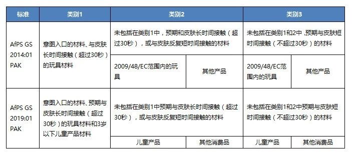 2019年8月28日,德國產品安全委員會(AfPS)發布了GS認證中多環芳香烴(PAHs)評估與測試的新標準AfPS GS 2019:01 PAK(舊版為AfPS GS 2014:01 PAK),新標準將于2020年7月1日起實施,同時舊版將于2020年6月30日失效。新版主要對測試參數和分類進行了更新,主要更新對比如下: