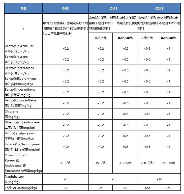 新標準PAHs的限值要求如下