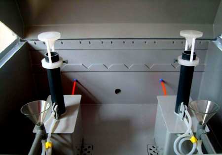影響鹽霧試驗結(jié)果的主要因素有試驗溫濕度、鹽溶液的濃度、樣品放置角度、鹽溶液的pH值、鹽霧沉降量和噴霧方式等。