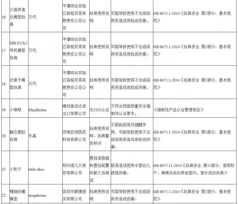 2020年1-5月海關(guān)查發(fā)的進(jìn)口兒童用品質(zhì)量安全不合格產(chǎn)品