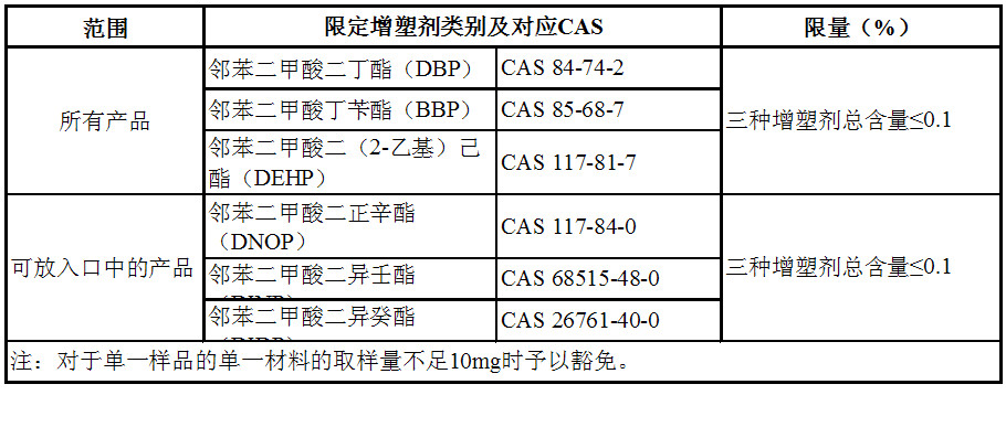 化學部分的主要更改:對于玩具產品使用塑料添加劑(增塑劑)的含量作了明確要求(詳見表2)